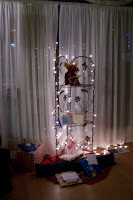 This is our Christmas "tree". It felt strange not having anything so I decorated up the old plant stand. Please not